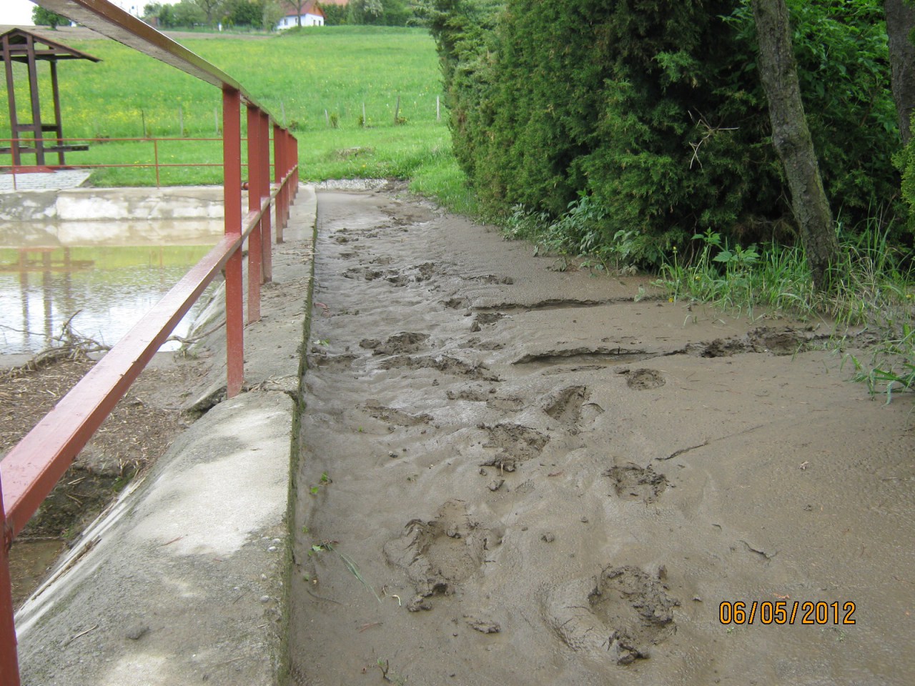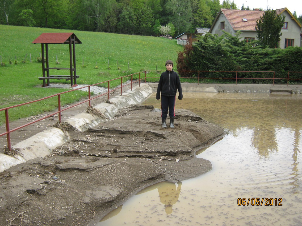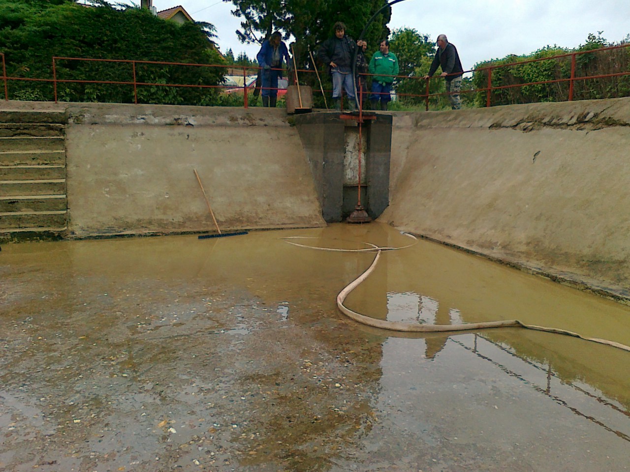 Čištění požární nádrže ve Věžníkově po přívalovém dešti 6.5.2012