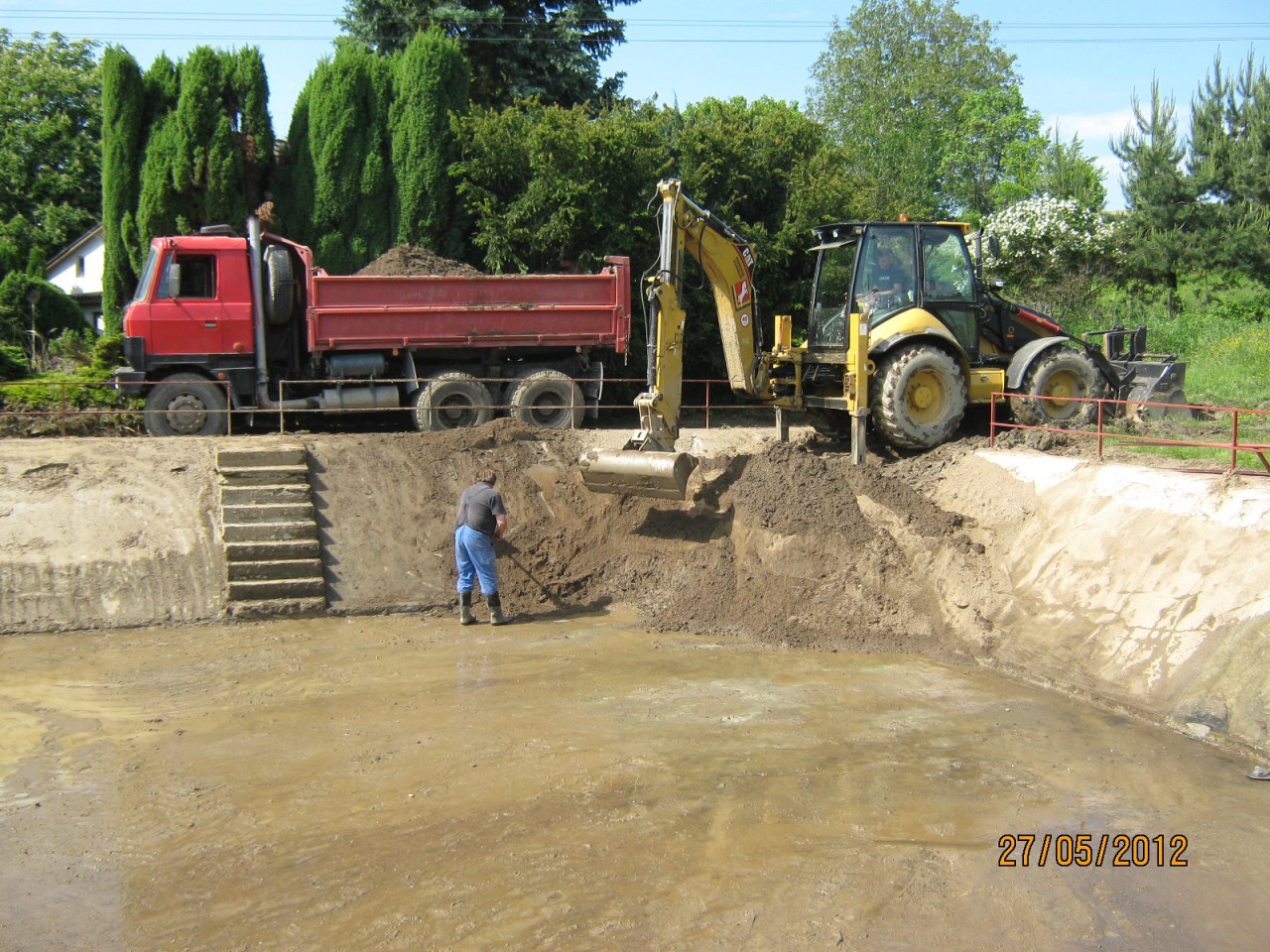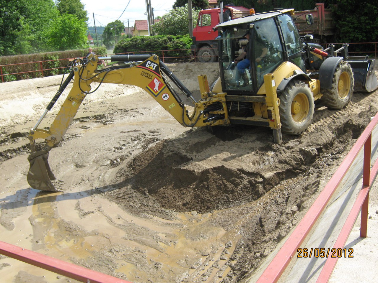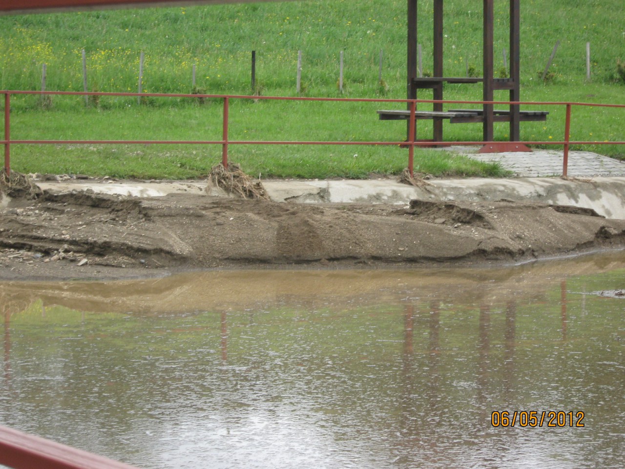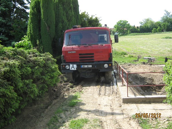 Čištění požární nádrže ve Věžníkově po přívalovém dešti 6.5.2012