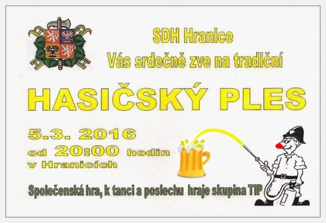 Hasičský ples v Hranicích, 5. března 2016 od 20.00 hodin.