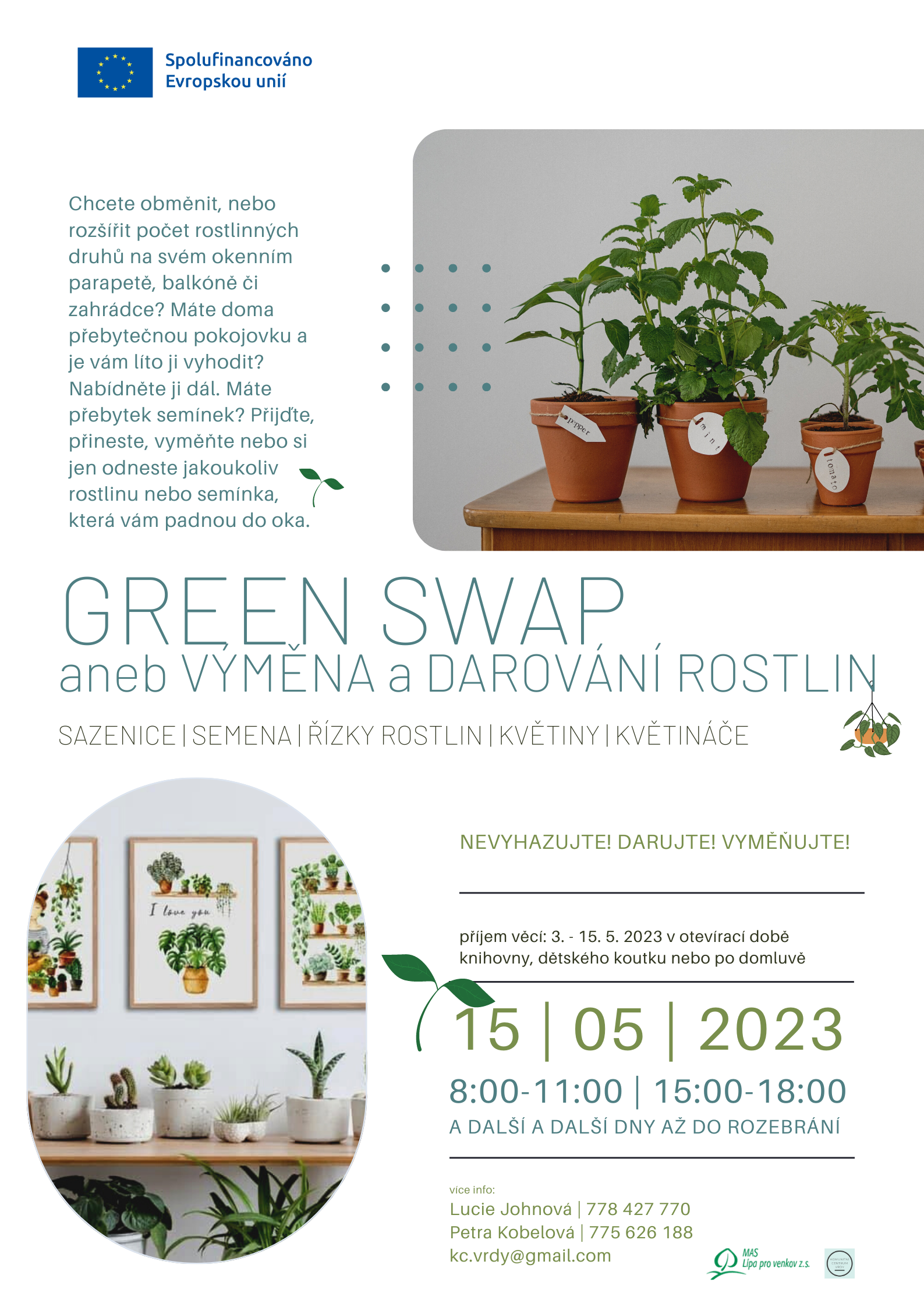 Chcete obměnit, nebo rozšířit počet rostlinných druhů na svém okenním parapetě, balkóně či zahrádce? Máte doma přebytečnou pokojovku a je vám líto ji vyhodit? Nabídněte ji dál. Máte přebytek semínek? Přijďte, přineste, vyměňte nebo si jen odneste jakoukoliv rostlinu nebo semínka.