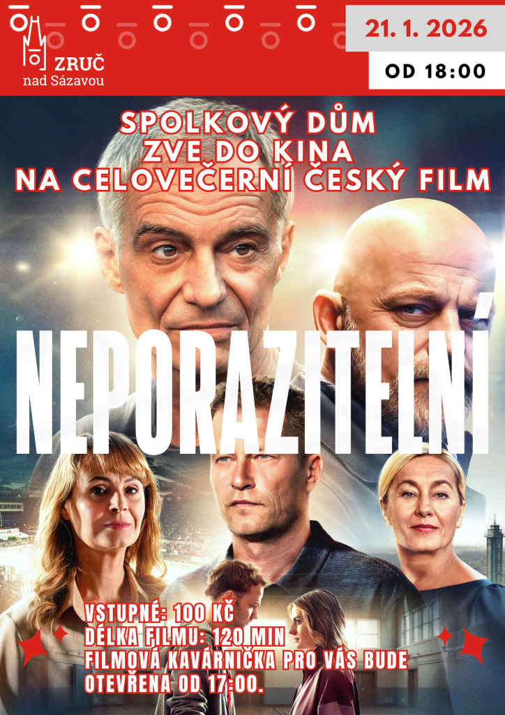 OKŠS vás srdečně zve do kina na nový film NEPORAZITELNÍ, který budeme promítat 21. 1. 2026 od 18:00 ve Spolkovém domě. Vstupné 100 Kč. Filmová kavárnička pro vás bude připravena od 17:00. Těšíme se na vás.